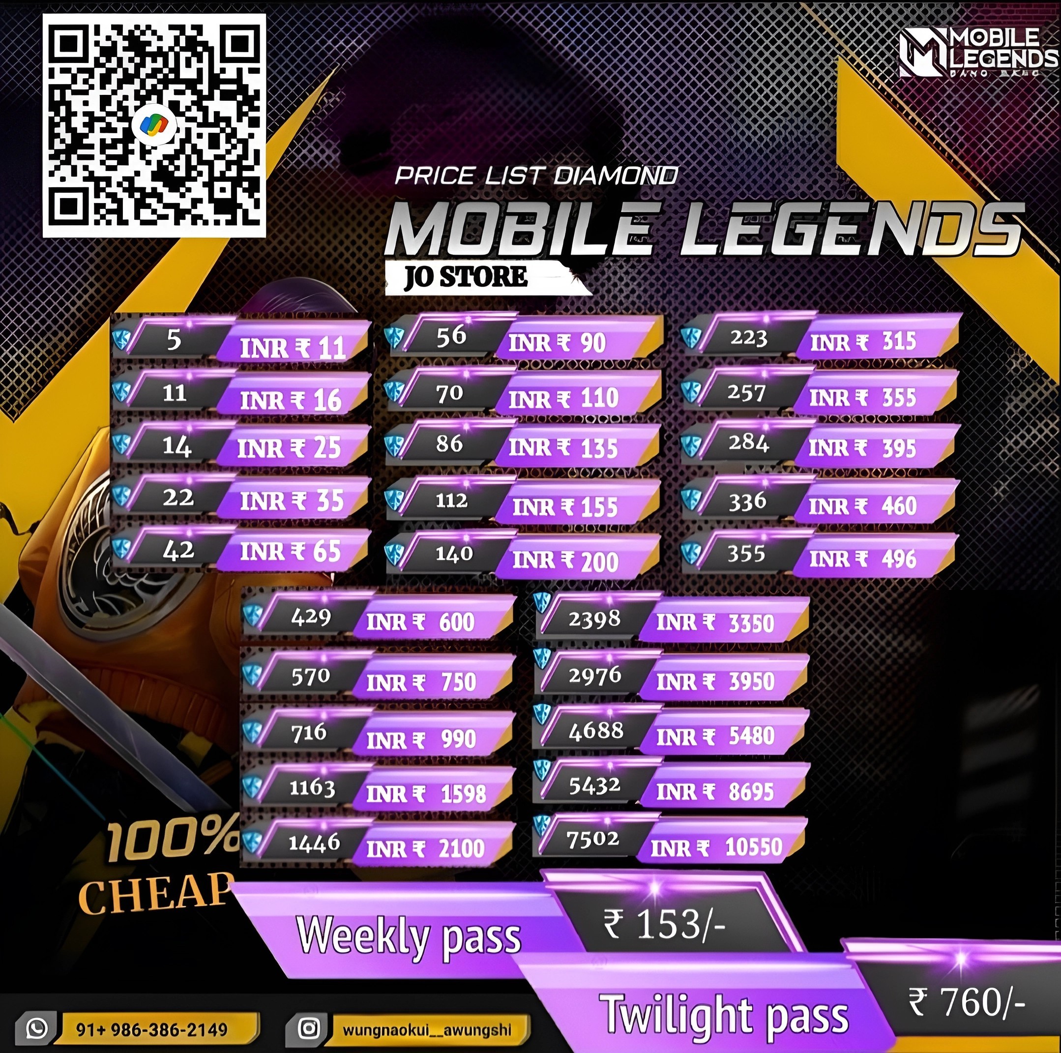 The Mobile Legends diamond chart is a reference guide that outlines the cost of diamonds, the in-game currency used to purchase various items such as heroes, skins, emblems, and other in-game content in Mobile Legends: Bang Bang, a popular multiplayer online battle arena (MOBA) game. The chart typically displays the different denominations of diamonds available for purchase and their corresponding prices in various currencies, helping players understand the cost of acquiring diamonds and making informed decisions when making in-game purchases.